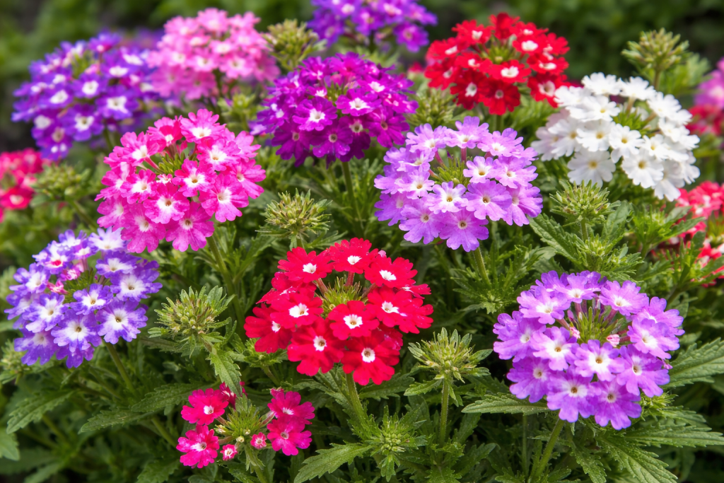 Las verbenas son plantas muy utilizadas en jardines por su floración abundante y prolongada, que comienza en primavera y puede mantenerse durante muchos meses. Sus pequeñas flores se agrupan en ramilletes de colores vivos, normalmente en tonos morados, rosas, rojos o blancos. Funcionan muy bien en macetas, jardineras o parterres soleados, donde crean manchas de color muy vistosas y requieren relativamente poco mantenimiento.